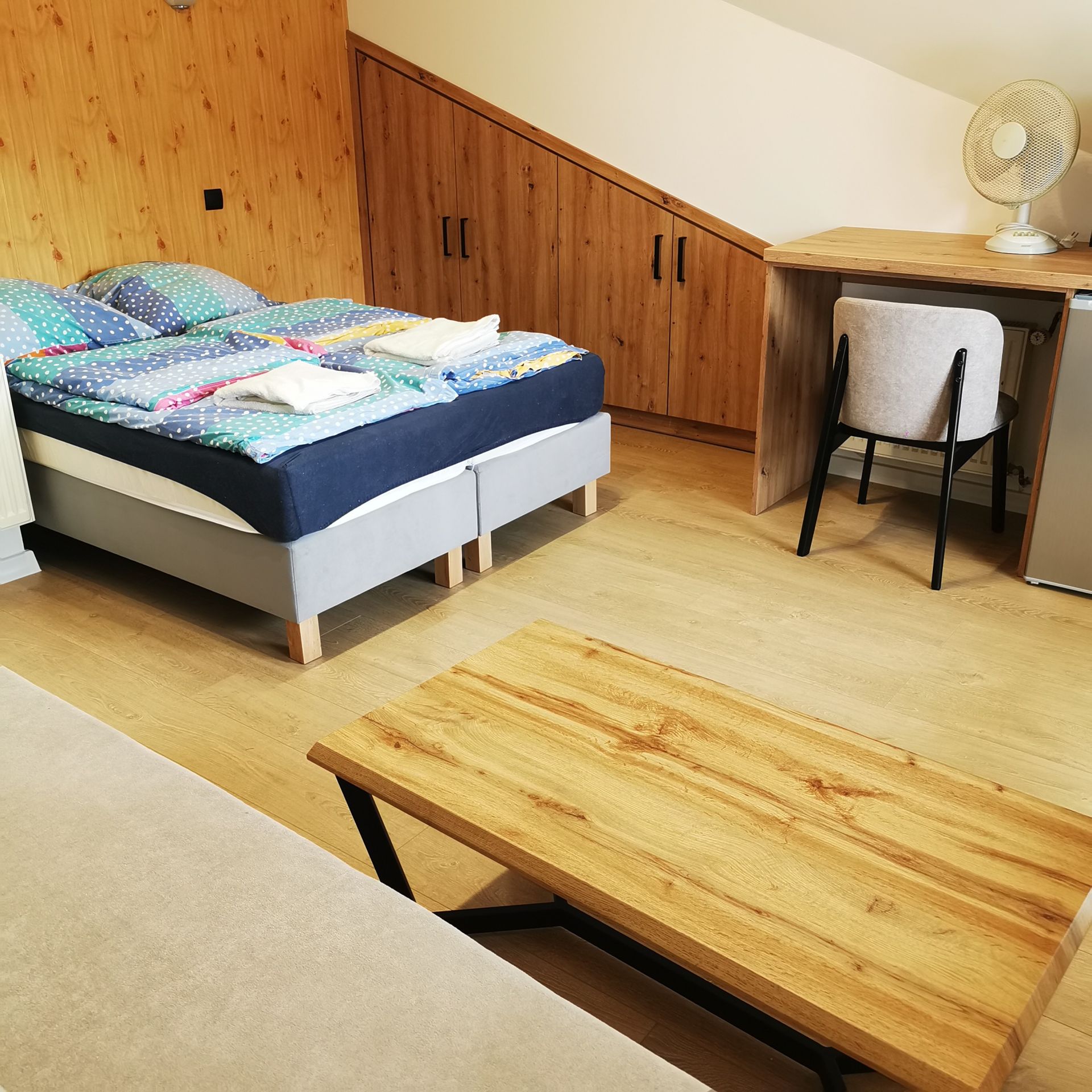 Wygodne dla małżeństwa z dwojgiem dzieci. Bezpłatny dostęp do Internetu (WiFi). Przed wejściem do pokoi znajduje się aneks kuchenny wyposażony w czajnik, lodówkę, umywalkę i podstawowe naczynia.